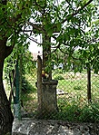 A kereszten semmilyen feliratot nem láttam. Állapota alapján maga a kereszt és a korpusz nagyon régi lehet. (XIX.sz. közepi vagy korábbinak gondolom, de erről semmilyen adatom nincs.) Az alapját a közelmúltban bevakolták.