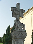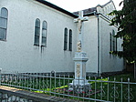 A templom jobb oldalán álló kereszt, törött Krisztus szoborral