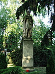 Az attalai templom kertjében áll a kereszt egy Szent Imre szobor mellett