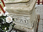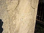 Egy ház kertjében áll a 6-os busz végállomásánál. Sajnos a feliratot nem tudtam elolvasni, pedig van rajta. Ha oda tudnék menni közvetlenül mellé, el lehetne olvasni. De el van kerítve.