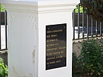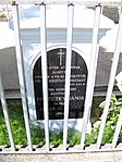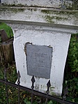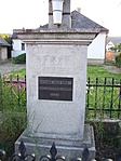 A kereszthez lépcső vezet. Viszonylag jó állapotú, műmárványnak tűnő anyagból készült, a betűk festése már majdnem teljesen lekopott.