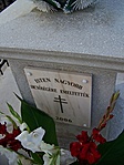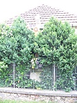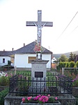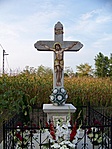 A kereszt a görögkatolikus templom kertjében áll, felső része fémből készült, talapzatán jókora tábla, sok névvel.