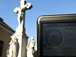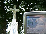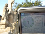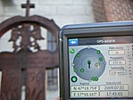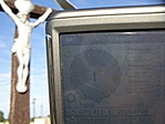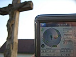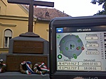 A templomkert zárva volt, a keresztet kívülről körbemértem. A koordináta ezért nem teljesen egyezik a képen lévővel, mivel számítottam. Feliratot sem láttam a kereszten.