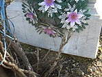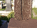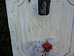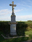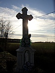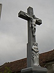Szép, fémesnek tetsző kereszt. A felirat nehezen olvasható.