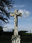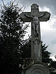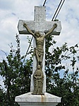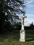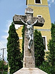 Kőkereszt feszülettel. Tukovics György és családja tragédiájának emlékére állították. A kereszten lévő szöveg olvashatatlan.