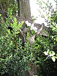 Valószínűleg ez lehetett a vasztélyi temető keresztje. Egy bukszusbokorban található, félig kidőlve, egy másik keresztről származó Jézus szobor a kereszt tövében a földön, a bokorba elrejtve.