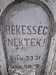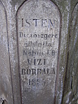 Elől: Békesség nektek! Luk. 23 31. Jún. 20.10. Hátul: Isten dicsőségére állíttatta Néhai I. 6. Vizi Borbála 1885