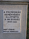 A feltámadás reményében állíttatta a gk. egyház 1995-ben Dobó Sándor Kőfaragó, Műkőkészítő.