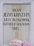 Dícsértessék a Jézus Krisztus Isten dicsőségére állíttatták: Simon Jánosné Jano Julianna és özv. Jano Imréné Kozér Julianna 1904 Újjáépíttették az úr és nagyszüleik tiszteletére Kiss Illés neje Piroska és családja Kékesi Bertalan és családja 2007
