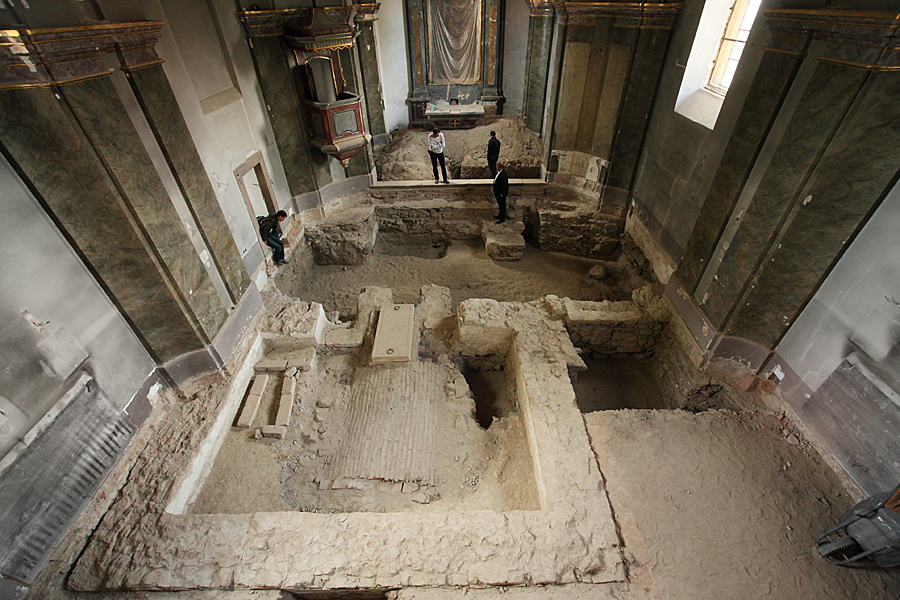 Múmiák a keresztbe épített templom alatt