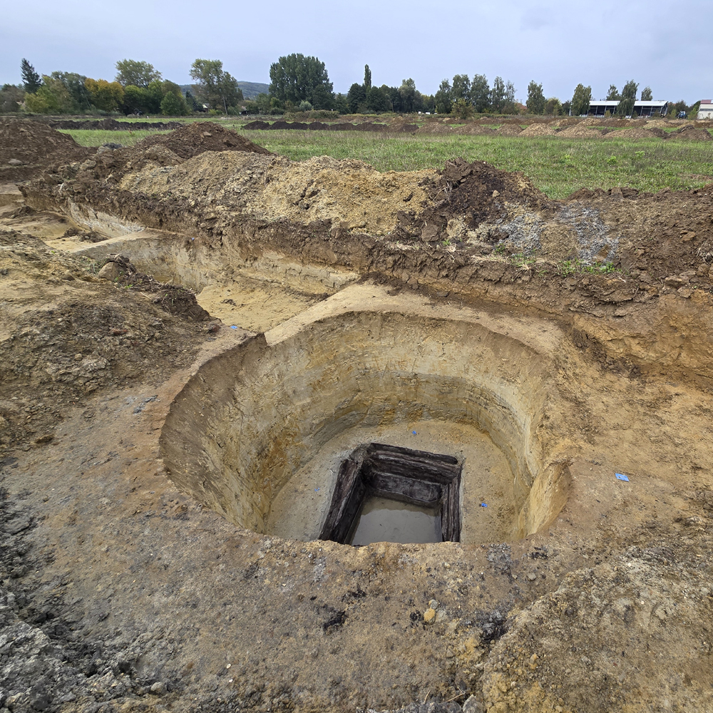 „A Magyar Nemzeti Múzeum Nemzeti Régészeti Intézete megbízásából végeztük az előzetes kutatást, próbafeltárást, hogy megállapítsuk a terület várható régészeti érintettségét. A legfontosabb eredményünk három római kori, 2. századi kút, amelyek mind egy szelvényben kerültek elő. A háromból kettőnek a belső faszerkezete is fennmaradt. A kutakat még az ókorban visszatemették, erről a betöltésük leletanyaga tanúskodott. A kutak nyilván a forrásokból is ismert Maestriana településhez tartoztak, a kérdés az, hogy az egykori város belső területén ásták-e őket, vagy ez már a település széle volt” – mondta el a Műemlékem.hu Magazinnak Simmer Lívia régész, a Göcseji Múzeum munkatársa.