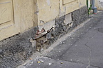 Eresze alatt beázik, lábazatáról, faláról hullik a vakolat, több díszítőelem hiányzik.