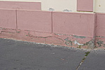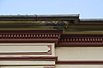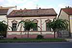 Lábazatáról kopik a vakolat, eresze alatt beázásnyom látható.