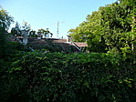 Nem látszik sok az épületből, eltakarja a növényzet, de ami látszik , az nem néz ki jól Elhanyagolt, gondozatlan.