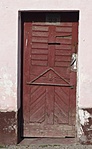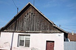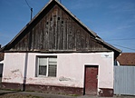 Fa oromzat, eredeti bejárati ajtó, a lábazat felázva. A tetőn is látok hibákat.