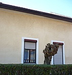 Aránylag jó állapotú, gondozott épület, de repedést látok az egyik ablak fölött.