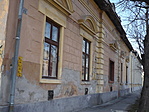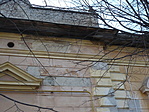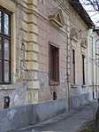 Erősen hull a vakolat, átalakítás nyoma: másféle ablak, másféle kerettel.