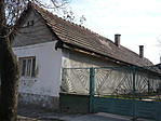 Hulló és/vagy javított vakolat, rácsok az ablakokon, cseréphiány, repedés az oromfalon.