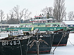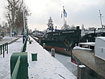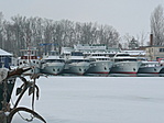 Előtte, a kikötőben van téli pihenőn a tó szinte összes hajója.