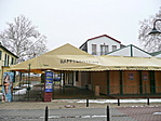 Az épület még áll, de a körbeépítése miatt nem sok látszik belőle.