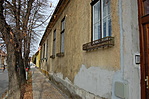 A lábazati részen erős vizesedési nyomok láthatól. A lehullott vakolatot pótolták, de színezve nem lett.