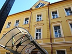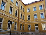 Jó állapotú, háromszintes, sárga színű, nagy méretű épület.