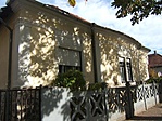 Jó állapotú sárga ház egy forgalmas út mellett.