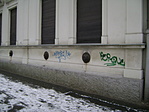 Kiváló állapotú épület, sajnos néhol graffiti tarkítja az épület oldalát.
