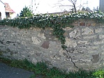 Nagyobb részt jó állapotú a kőfal, de egy darabon hiányos, téglával lett pótolva, ez némiképp rontja az összképet.