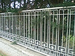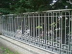 Erős a gyanúm, hogy ez már nem a védett kerítés, mert ez egy teljesen átlagosnak tűnő, modern darab. Ezt alátámasztandó a kerítésoszlopok is teljesen új építésűek.