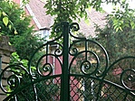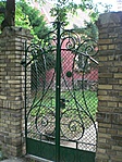 Az eredeti kerítésből a levédett egy szakasz a kaput jelenti, szépen rendben tartják, míves munka.