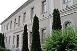 Az épület templom felőli oldalánál áll a : "Pozsonyból Ceglédre hozott emlékmű - A Kossuth-erkély