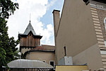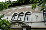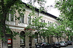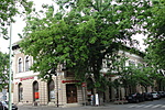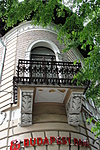 Nehezen fényképezhető a szűk utca és a növényzet miatt. Felújított állapotban találtuk, szemben áll a Kossuth Szállóval. Csak az erkély alatt hullik a vakolat.