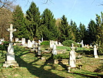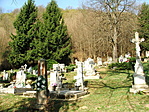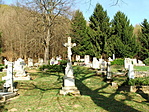 Rendben tartott temetőben állnak a síremlékek és a keresztek.