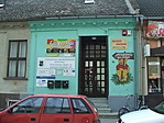 Valószínű, hogy a torony a zöldre festett falrész, az épületben üzletek, kiadó boltok.