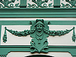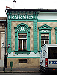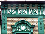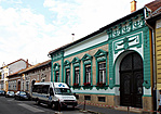A Kossuth utca bensőséges hangulatából kirí ez az épület, és nem a szecesszió eredendő színessége, hanem a színek egymás mellé rendelése miatt. Az ornamentika élénk zöldje a fehér héttér előtt harsány, hideg hangulatú; ez a téglafal okker-barna tört "földszínével" disszonáns hatást vált ki.