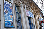 Ízléstelen reklámokkal agyonzsúfolt épület.