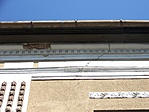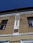 Jó állapotú épület, bár a tetőzet alatti párkánynál repedés és hulló vakolat látszik, emellett a fali díszek is kopottasak.