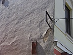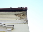 Az utcafronti rész földszintjén, az üzleteknél elég jó állapotú, karbantartott épület, azonban az emeleten, az erkély és a kiugró rész körül málló vakolat látszik. A szomszéd ház felőli tűzfalon hatalmas lemállott vakolatfoltok vannak, és úgy tűnik, valamilyen statikai okokból vaspálcákkal erősítették meg, húzták össze a falakat.