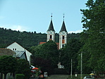 Járó Péter utcakép, háttérben a kegytemplommal.