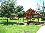 Az óvoda a déli szárnyban van, a park is jórészt oda tartozik, teljesen különálló bejárattal is rendelkezik egy másik utcára.