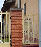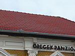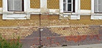 Az épület előtt már nincsenek fák, állapota romló.Az oldalfalon tégláig hiányzó vakolat, a lábazat is rossz állapotú.