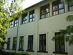 Az iskola épület jó állapotú. A földszinti ablakokon belül látszik, hogy megtartották az eredeti nyílászárókat. és a festésük is eltér a külső barna színtől (kép - bár alig látszik).