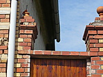 A kapu környékén látható : az oszlop téglái ledőlni készülnek.