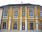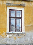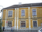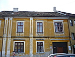 Ütött kopott egyemeletes épület. A kapu félig átalakítva. A földszinti részen nagyobb, az emeletnél kisebb vakolat-, illetve festékhiány, piszok.