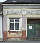 A háznak szép vakolatdíszei vannak.