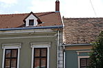 Eresze alatt erős beázásnyomok láthatók. A csatornát cserélték, valószínű, hogy a beázás megszűnt. A vakolathibákat még nem javították.