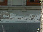 Az épületre új ablakok kerültek. Állapota jó, de a lábazaton nedvesedés és vakolathullás látható.
