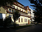 A valamikori földszintes házból érdekes szinteltolásokkal mozgalmas külsejű háromszintes épület lett. A régi részt felújítva meghagyták.