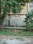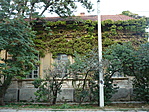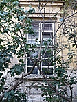 Elhagyottnak látszó, elhanyagolt épület, környezete is rendezetlen.